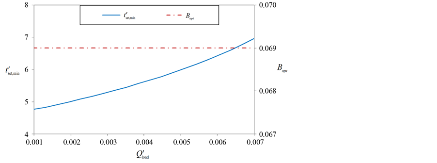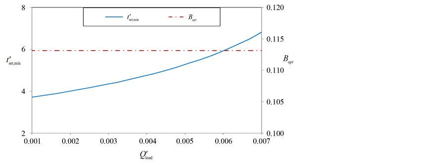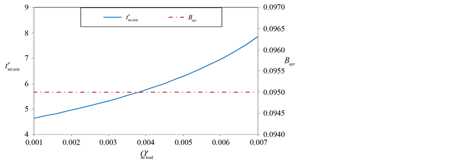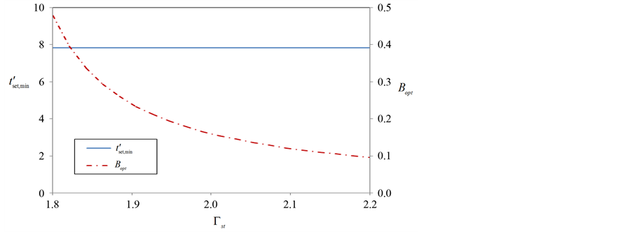 It can be observed from Figure 3 that the minimum time to achieve the prescribed temperature is independent of the collector stagnation temperature. This is due to the heat absorbed by the generator that is quite constant regarding the stagnation temperature variation [17] . If the generator heat input is constant, the dimensionless collector size B in Equation (17) will decrease with higher collector stagnation temperature and the temperature of the generator Equation (15) is also constant. The time set point temperature decreases with the increase of the refrigerated space temperature. For instance, at cold source temperature