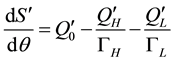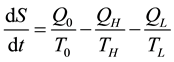 According to the cycle model mentioned above, the rate of entropy generated by the cycle is described quantitatively by the second law as: