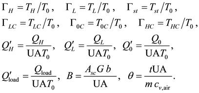 The complete set of no dimensional equations for the model, including the absorption refrigerator steady state equations is: