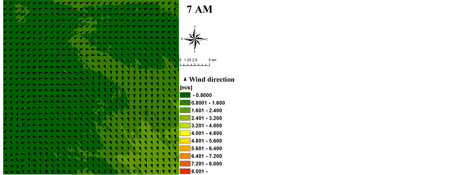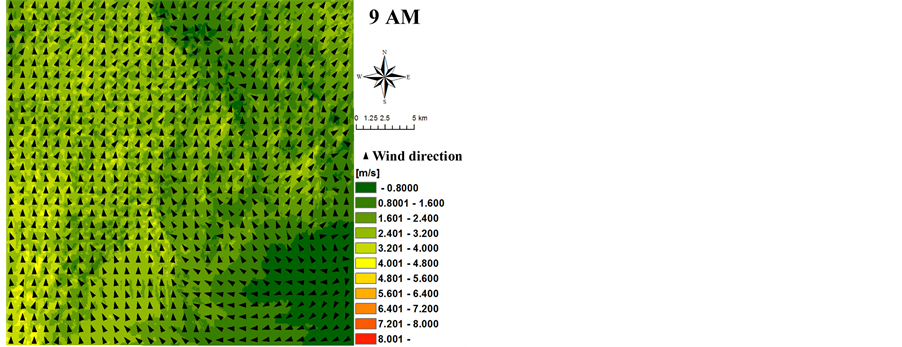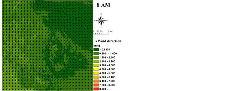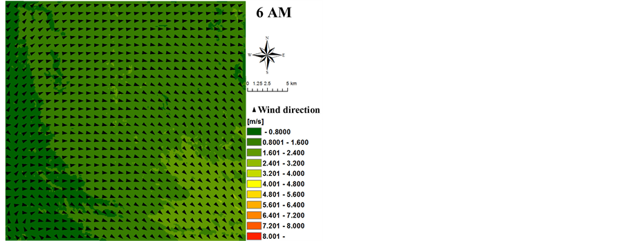 Figure 4. Wind direction and wind speed for Scenario 2 for 6 AM to 9 AM.