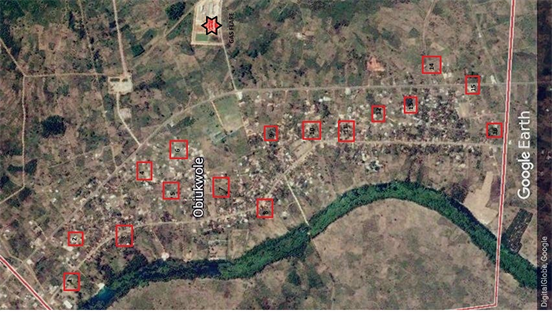 The study was done in Ebedei Waterside, one of two geographically separated regions of Ebedei community; the other being called Ebedei-Uno. Ebedei Waterside lies between 5˚52'N and 6˚11'E, and 5˚54'N and 6˚13'E along the coast of River Ethiope and it is just around 3 km away from Obiaruku, the Local Government Headquarters. It is divided into four smaller quarters; Obi-Iloh (Umuosele), Obi-Ogene (Umueziogoli), Adonishaka (Ogbe-Uzu) and Ukwuole, with each quarter having four streets. Farming is the common economic activity of the people living in the four quarters. Ebedei Waterside also play host to Platform Petroleum Company―an oil exploration company.