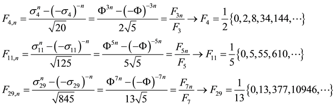 Table 5. Integer solutions of the Diophantine equation 5b2 − k2 = 4.