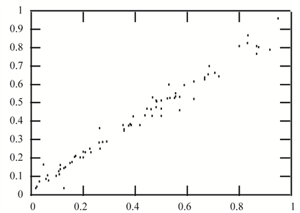 In Section 2.1, we have shown that, under the multivariate beta prior, the analytical Bayesian solution doesn’t express clearly a certain linearity of the MLE. In this experiment, we demonstrate by simulation that the Bayesian estimator given by (1.9) is a linear function of the MLE given by (1.5).