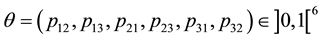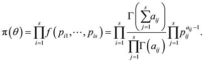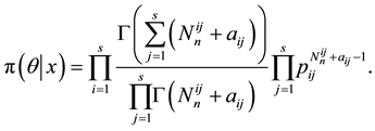 Assoudou and Essebbar [3] have studied the Bayesian estimation for the multistate Markov chains, under the Jeffreys’ prior distribution. As shown, this prior has many advantages: it permits a certain type of dependence between the various transition probabilities. Moreover it’s a conjugate prior for