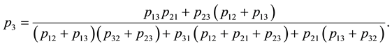 In this experiment we generate 100 independent Markov chains each with three states and 60 observations. By using the IMH algorithm, the transition probabilities are simulated from the multivariate beta given by (1.8) with