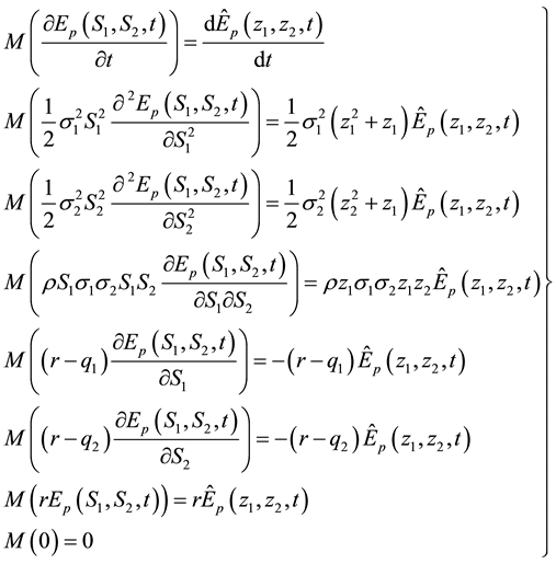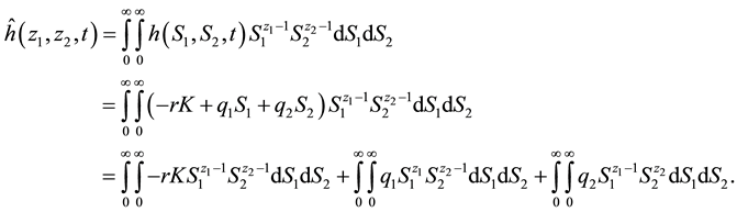 Panini and Srivastav [3] considered option pricing with Mellin transforms. They derived the integral equation representations for the price of European and American basket put options with non-dividend yield using the Mellin transform techniques. Basket option pricing using Mellin transforms was considered by Manuge and Kim [4] . They used the Mellin transform to derive the analytical pricing formulas and Greeks for European and American basket put options.