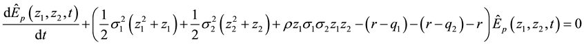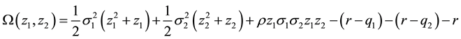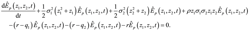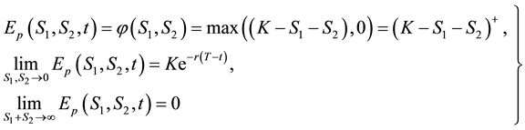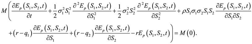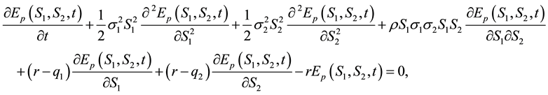 ・ The integral equation for the price of European put option on a basket of two stocks with dividend yield can be obtained directly from the price of its counterpart, the American put option on a basket of two stocks. Hence, (51) can be written as