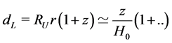 which comes from an expansion of the relevant quantities from their present value and where the dots stand for terms involving derivatives of the Hubble parameter. Thus measurements of luminosity distances and redshift parameters z of a number of galaxies have led to the discovery of the accelerated expansion of the Universe. This was once more unexpected since it clashed with our traditional picture of an attractive gravity.