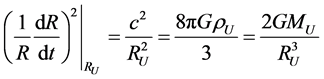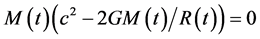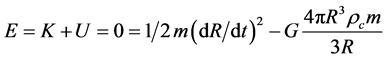 It is evident that these considerations represent a rough non relativistic schematization of the process. As a matter of fact in the energy density no trace of the kinetic energy of the expanding particles within the sphere appears nor their contribution to the potential energy because of the mass energy equivalence; the mass M is just an “effective” static source which is thought to represent reality and hence to determine the motion of m.