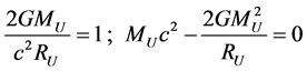which implies that the total mass is balanced by its gravitational self energy (up to a factor of 2) to make the total energy of the Universe zero.
