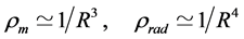 and by taking into account the energy content of pressure (which plays a role essentially only for radiation) with the well known behaviors for matter (m) and radiation (rad)