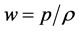 The ratio of pressure to density