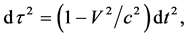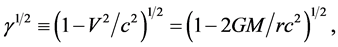 times more slowly that the clock used for measuring time at the origin of the coordinates. If we call the velocity of light at the origin of the coordinates