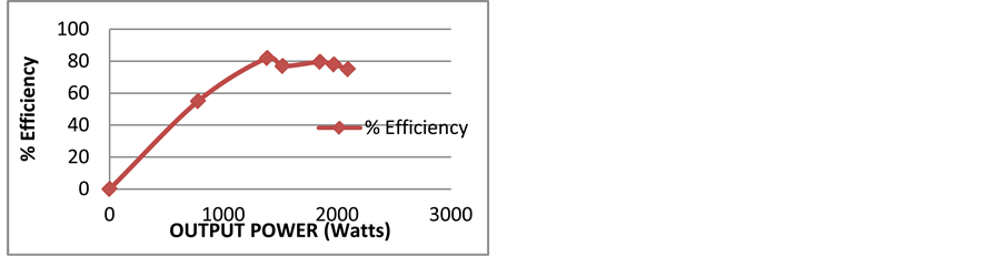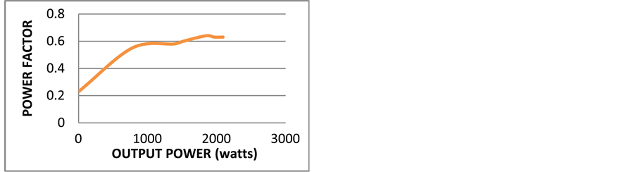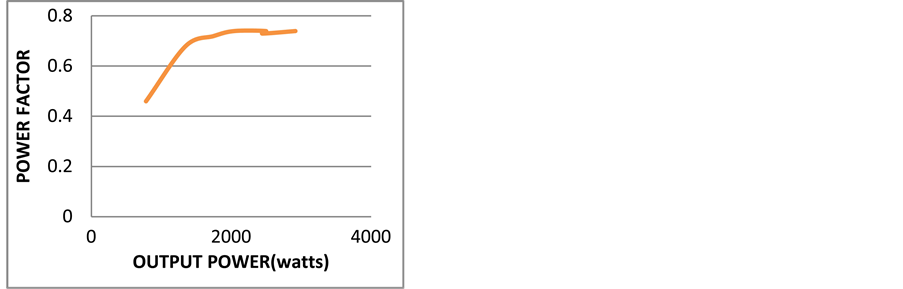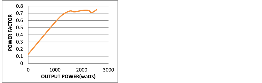 Table 5 shows the reading observed with field excitation with 50 V and field current of 0.72 A. The second winding is connected to a load of 1 A. It is observed that the maximum power factor is 0.74 and efficiency is 92.3% for the load current of 5.0 A. The minimum power factor is observed as 0.68 for the load current of 3.5 A, the efficiency of the machine for this load is 78.3%. The efficiency and power factor characteristics are shown in Figure 11 & Figure 12.