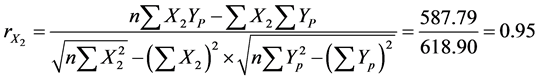 The multiple regression calculations are carried out using the three variable normal Equations (4)-(7) with substitution with values from Table 2 new set of equations are derived as follows