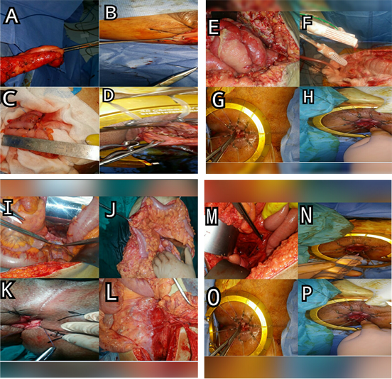 Abdominal part performed either open or laparoscopic technique; high ligation of the inferior mesenteric vein is performed at the level of the inferior border of the pancreas Figure 2(I). Mobilization of the splenic flexure colon, descending colon, Figure 2(J), ligation the inferior mesenteric artery after the emergence of the left colic artery (low tie) Figure 2(L).