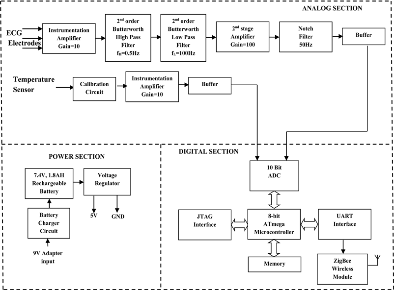 Figure 5. Block Schematic of the Sensor Node 1 to acquire ECG & body temperature.