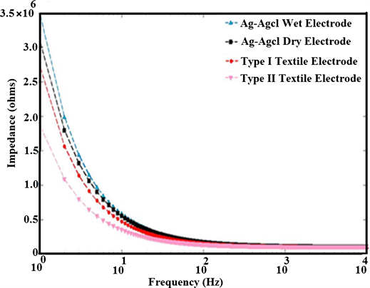 The contact impedances for the four types of electrodes considered for wearable monitoring were measured and analyzed.