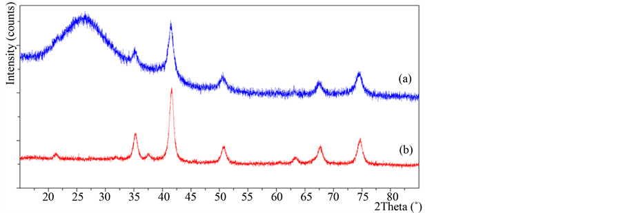 Figure 2. XRD patterns of Fe3O4@SiO2 (a) and single Fe3O4 nanoparticles (b).