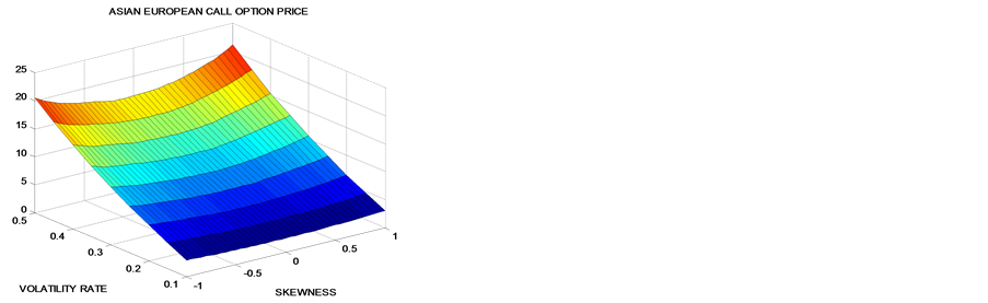 Figure 1. Asian European call option process for different values of volatility and skewness.