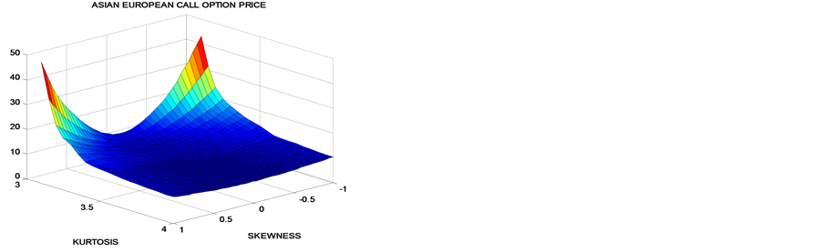 Figure 2. Asian European call option process for different values of kurtosis and skewness.