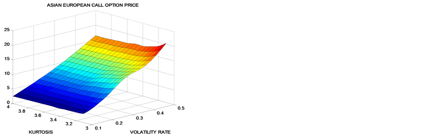 Figure 3. Asian European call option process for different values of volatility and kurtosis.