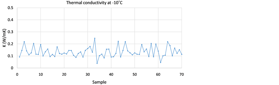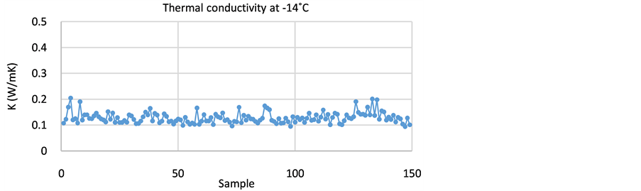 The results of Experiment 2 at −14˚C have less non steady state thermal conductivity fluctuations than the results of Experiment 1 at −10˚C because of the reason that in second experiment there were low variations in cold chamber temperature as mentioned in Section 3. Nevertheless it is found that this approach to estimate thermal conductivity of a material by varying thickness of two geometries and testing it in cold chamber facility is sufficiently adequate and can be utilized for future experimentations at least to estimate the thermal conductivity of any material with unknown properties and composition. The results of this analysis can also be improved by introducing interface heat transfer principle in this thickness variation principle.