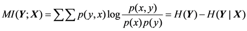 Mutual information (MI) can measure the mutual dependence of two variables, which is defined as:,