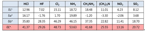 Table 1.Degree of the color change by L * a * b* color coordinate (8 types of gases of 10 ppm concentration).