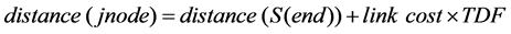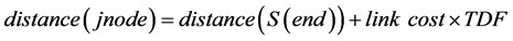 For dynamic networks, the time to travel from node “i” to node “j” of a particular link “k” is no longer a constant. The actual travel time on link “k” will depend on the departure time at node “i”. In this work, the following formulas are employed for a typical link “k”, connected by node “i” to node “j”: