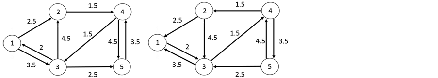 Step 1. Revised the links’ direction of the given network (see Figure 2(b)). The given arrival times (obtained from problems 1 and 2) can be used as the known departure time at the source node 2.