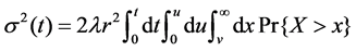 Section II-B and Section II-C describe that cumulative traffic of the M/Pareto process is fractional Gaussian processes, then the properties of the cumulative traffic are the same with A(t). If the two models describe the same accumulative fractional arrival process, they have the same statistical properties and self-similarity. Therefore, their expectation and variance values are corresponding equal, and so does self-similar parameter H. Thus, the variance of A(t) is expressed as