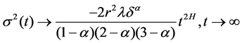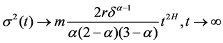 If Hurst parameter is H = (3 − α)/2, approximate variance is proportional to t2H with the growth of t, i.e.: