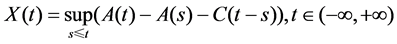 where constant C represents service rate (that is, the link capacity), A(t) denotes the FBM traffic model. Consequently Norros deduce the effective bandwidth formula with cache capacity by fractional Brownian storage process X(t):