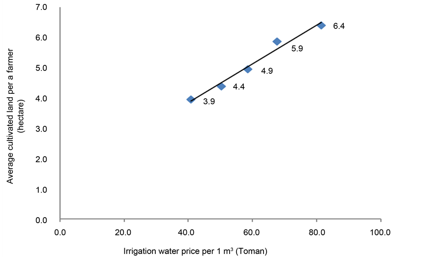 Figure 8 shows the direct relationship between irrigation water price and area under cultivation in the region during the study period. It means irrigation water price addition not only caused the farmers leave their job, but