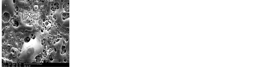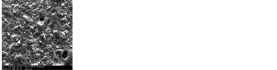 loose layer of biocoating which is prepared in high electrolyte concentration condition, so the wear resistance is poor, and early wear mainly is occurred in the loose layer, ultimately, the wear capacity is larger. To the lower concentration electrolyte level (8 g/L), because of the lower concentration the process of growth of the prepared coating is not sufficient, which does not meet the minimum requirements of micro arc oxidation process for electrolyte concentration. So it is not sufficient for micro arc oxidation discharge in the parts of micro area, and the plasma discharge fully is not unrealized, the prepared coating is mainly in the loose layer with relatively thicker, who affected the effective generation of dense layer, so the wear amount is large in the early stage. This shows that proper concentration is helpful to improve the surface properties of the biocoating, and the coating surface is smooth and dense, as shown in Figure 2. In the later period of wear because of contact of the friction pair and the dense layer (In the early of outer basic is nearly worn off), and because the biological membrane pores can store lubricating oil to improve the lubrication effect, and later the wear volume is gradually reduced and finally tends to zero.