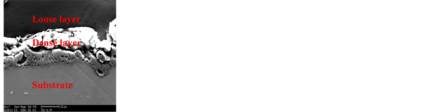 MAO is an economic, efficient and environmentally friendly technology for surface treatment on lightweight metals (aluminum, magnesium, zirconium, titanium, etc.) or metal alloys [5] - [8] . Many properties of MAO coating including bonding strength with the substrate, thickness of film, micro hardness, anti-wear and corrosion resistance are all relatively excellent [9] - [12] . But the coating outside in general is a loose layer, while the internal one is a dense layer. Usually related to dense layer, the loose layer is thick and loose organization, and mainly consists of anatase phase with relatively low hardness for the Ti alloy MAO coating [13] - [16] .