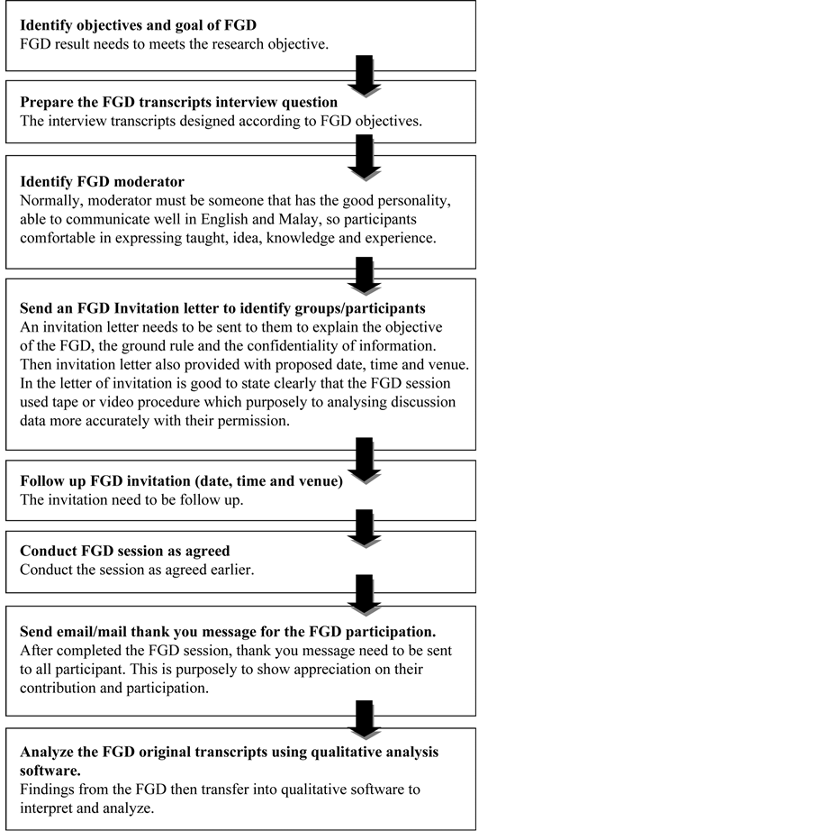 Norshakirah Ab Aziz, (2015) Role of Focus Group Discussion (FGD) in e-Business Research. Open Access Library Journal,02,1-6. doi: 10.4236/oalib.1101281