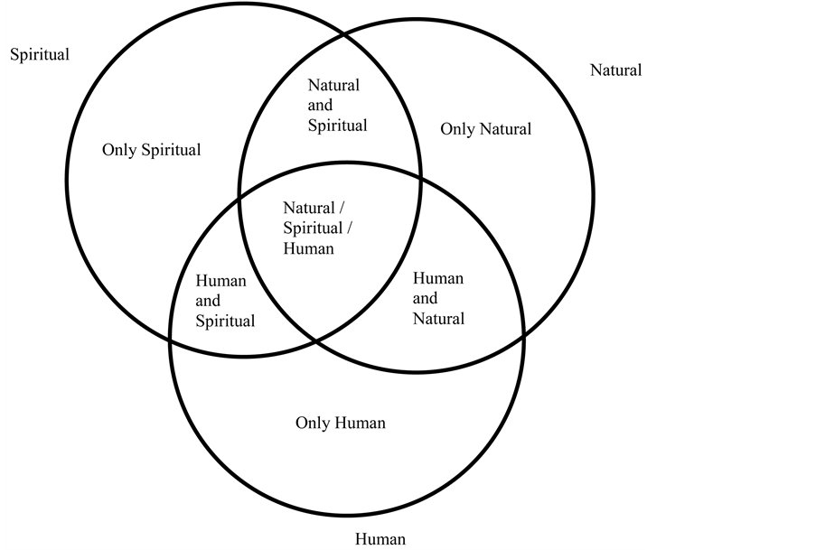 The three (3) circles as in Figure 1 are depicting the African worldviews which centre mainly on the human, spiritual and natural.