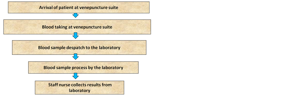 This study topic was chosen due to long waiting time at various stages before doctors or pharmacists see patients at the warfarin clinic. The warfarin clinic is one of the clinics with a high patient load at the medical outpatient department of Segamat Hospital. It is conducted on every Monday by several medical officers and assisted by one or two pharmacists. There are various steps involved before patients are prescribed the correct dose of warfarin to achieve the target international normalised ratio (INR). Common cases seen at the warfarin clinic include atrial fibrillation, prosthetic heart valves and venous thromboembolism. The waiting time for patients is one of the important factors that should be considered in the management and organization of the heath care system [1] . Nowadays, customer care in all the organizations particularly the health care organizations has been advanced [1] . Prompt treatment in hospitals means to minimize the time for getting a health service with an emphasis on favourable treatment [2] . The main problem related to the waiting time is obtained from three main factors: people (consumers), organizations providing health services (suppliers), and environment [3] . Health care quality emphasizes on patient’s satisfaction in general and this involves several processes. One of these processes in the health care organizations is the process of the appropriate management of waiting time [4] . This study topic was mainly chosen due to its seriousness of the problem. Long waiting time can lead to increased dissatisfaction among patients especially in the elderly with multiple co-morbidities. Data can be collected and measured using prepared recorded waiting time sheets. It is appropriate as it relates to patient’s quality of care. Besides that, it is remediable as waiting time can be reduced at various stages with implementation of corrective measures. The point-of-care testing (POCT) system provides an accurate and reliable alternative in reducing waiting time for patients on oral anticoagulation therapy. The point-of-care testing coagulometer measures the prothrombin time and INR (the globally recommended unit for measuring thromboplastin time) in people on oral anticoagulation (vitamin K antagonist) therapy. Besides that, point-of-care testing (POCT) within primary care settings eliminates delays in waiting for the result of prothrombin time measurement to be processed by the hospital laboratory, and the subsequent delay in adjustment of anti-coagulation dosing. It also avoids the need to attend hospital anticoagulation clinics [5] . Patients’ self-tests can either adjust their medication according to a pre-determined dose-INR schedule (self-management) or they can call a clinic to be told the appropriate dose adjustment (self-monitoring) [6] . Several trials of self-monitoring of oral anticoagulant therapy suggest this may be equal to or better than standard monitoring [6] . The process of care at our conventional warfarin clinic is as illustrated in Figure 1.