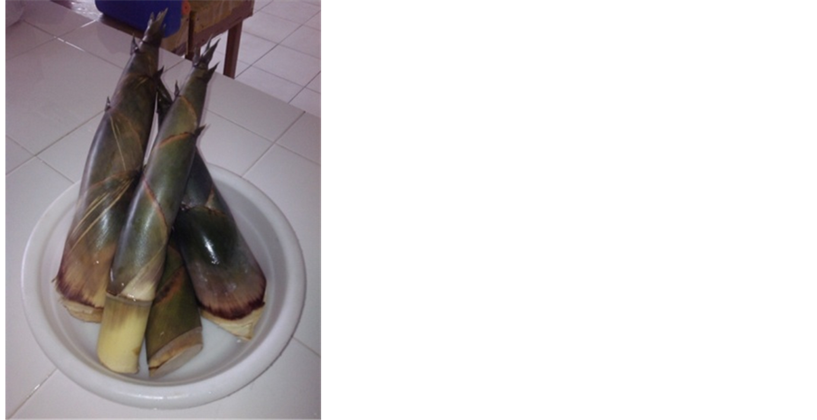 Selection and Preparation of Raw Materials. The researchers looked for Bamboo shoots that are 7 - 15 days old. The freshly harvested bamboo shoots are washed, and sanitized, after which, 2 - 3 layers of husk as well as the hardened base are removed. The other ingredients were purchased from selected supermarket which sell high quality products.