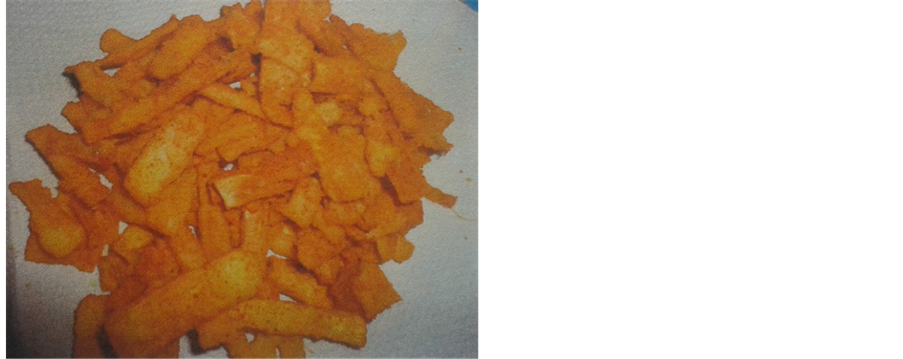 3) Based on the sensory evaluation of BSU Analytical Testing Laboratory using five (5) point scale. The color is 2.6, which is light in color, aroma (fried potato chips) is 3.0 which means distinct, the flavor (fried chips) is 2.56, perceptible, the texture is 3.1, which means crisp and light, its salty taste with 1.4 is barely perceptible, aftertaste is 1.4 which means non-existent. The overall acceptability received a mean of 2.1 which means that the product is like by the evaluators.