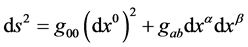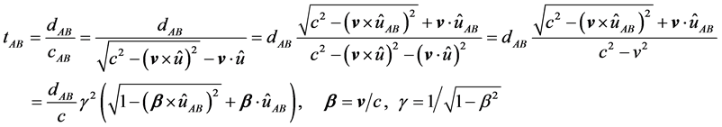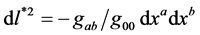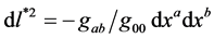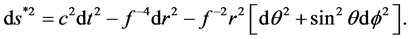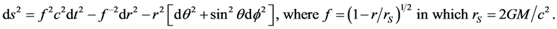 Note that this metric does not represent a solution to the field equations: it simply introduces a system for the measurement of time and distance that is not influenced by the field. Time is measured using signals from a remote clock (the “clock at infinity”), while distances are measured by electromagnetic echo ranging calculated using the same time system6.