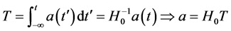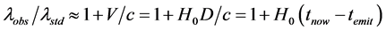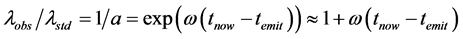 The frequency parameter, ω, is easily identified as the Hubble constant, H0. For nearby galaxies, Hubble’s “law” implies