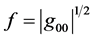 is the true rest mass, m is the proper rest mass, a constant, and g00 is the time-time component of the metric tensor