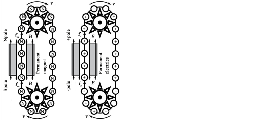 Figure 4. The existence of magnetic monopole or permanent electrics (the electric analog of permanent magnet) implies the feasibility of perpetual mobile of the first kind. Specifically, when moving through a rotational magnetostatic (a) (electrostatic (b)) field caused by permanent magnet (electrics), the magnetic (electric) charge system will work as a perpetual mobile of outputting the power unlimitedly. This is impossible.