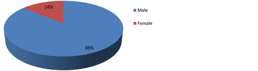 This is a male dominated activity (86%) as seen in Figure 2. Traditionally males are family heads and are suppose to be providers of food. This finding agrees with [4] report that men are mostly involved in open space urban vegetable farming in West Africa.