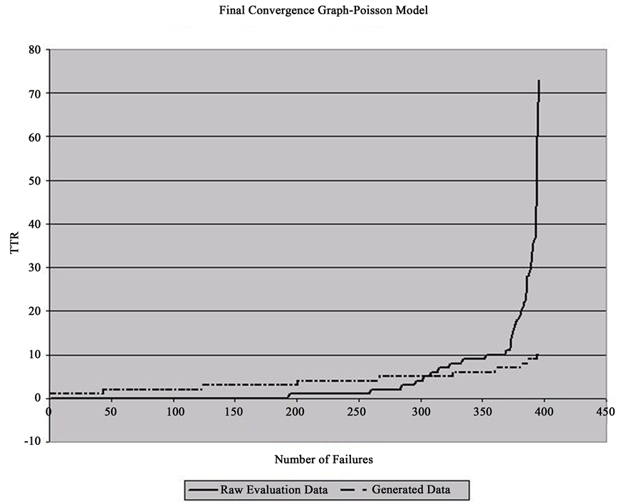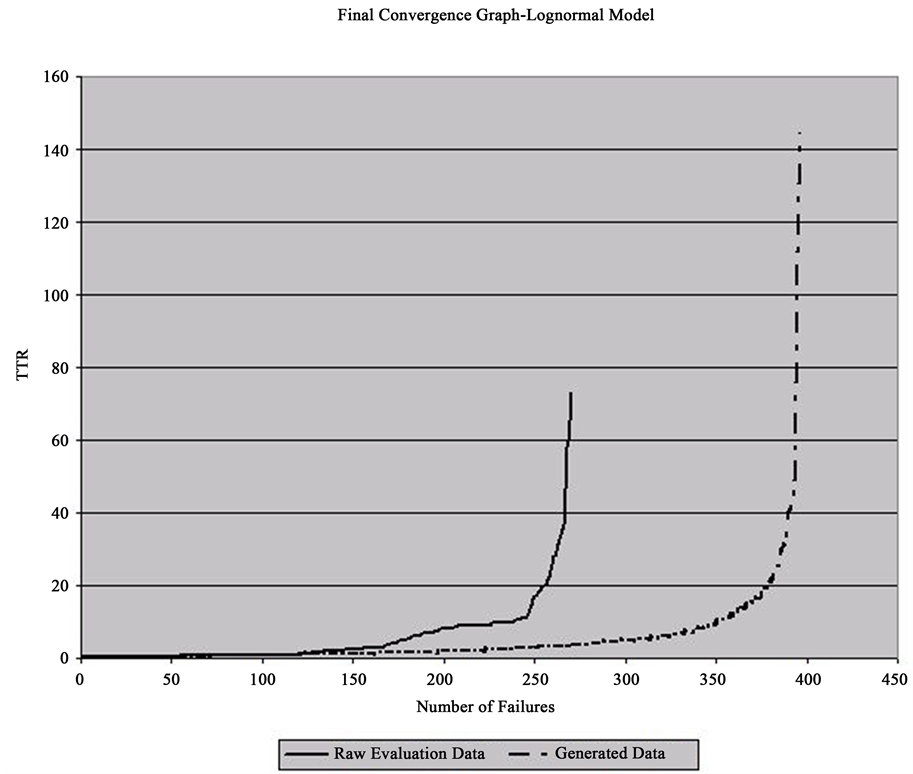 As mentioned earlier, similar graphical testing processes are implemented, and show that the data sets under study are independent and identically distributed. Table 5 and Table 6 show that, after one iteration, GenRel yields an offspring data set within the convergence limit in discrete and continuous probability distribution fitting function, respectively. Therefore, GenRel is considered applicable to predict future repair data set based on the given historical data sets under this set of configurations.