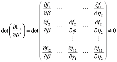 Furthermore, the matrix ∑, of Equation (2.16), cannot be ascertained as a full rank matrix by mere observability or first-hand algebraic operation. A known practical approach is the application of numerical simulation, which quantitatively computes the rank of ∑. We initiate this approach by first simulating the output variables of