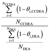 2.1.3. Test Difference between the Average Efficiency Scores of CCDEA and DEA